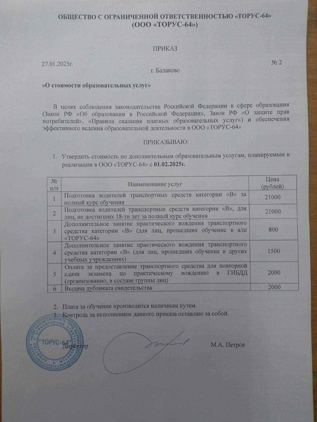 В автошколе «ТОРУС-64» по адресу: г. Балаково, ул. Пионерская, 52 имеются: